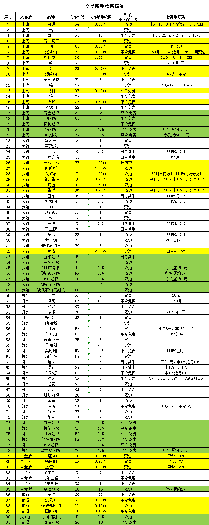 另外遇到交易所调整的情况,期货公司也会跟着变,今天我们提供的就是期货交易所手续费一览表2021年6月28日。