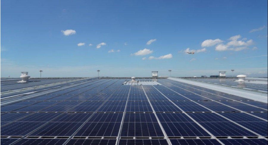 台风“桦加沙”过境后的深圳宝安机场建筑光伏一体化项目。